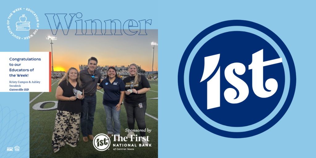 We are excited to announce that our September 26th Gatesville ISD Educators of the Week are Ashley Swodeck and Kristy Campos. They were honored during Gatesville’s Homecoming game with a ceremony on the field. They were each given a trophy and $500. Ashley is a teacher at Gatesville Elementary School. One parent of a student had this to say about Mrs. Swodeck, “She’s encouraging and positive when things might get a little hard to understand for my kid. And I know that when I drop him off for school, he’ll be loved and cared for every day.” Mrs. Campos is a teacher at Gatesville Intermediate. One person had this to say about her, “She pushed my son to do his best and never accepted work from him if she believed he could do better. Mrs. Campos believes every student is capable of the best and shows them this by building relationships and having high expectations.” Thank you, Mrs. Swodeck and Mrs. Campos for your commitment to the children of Gatesville ISD.